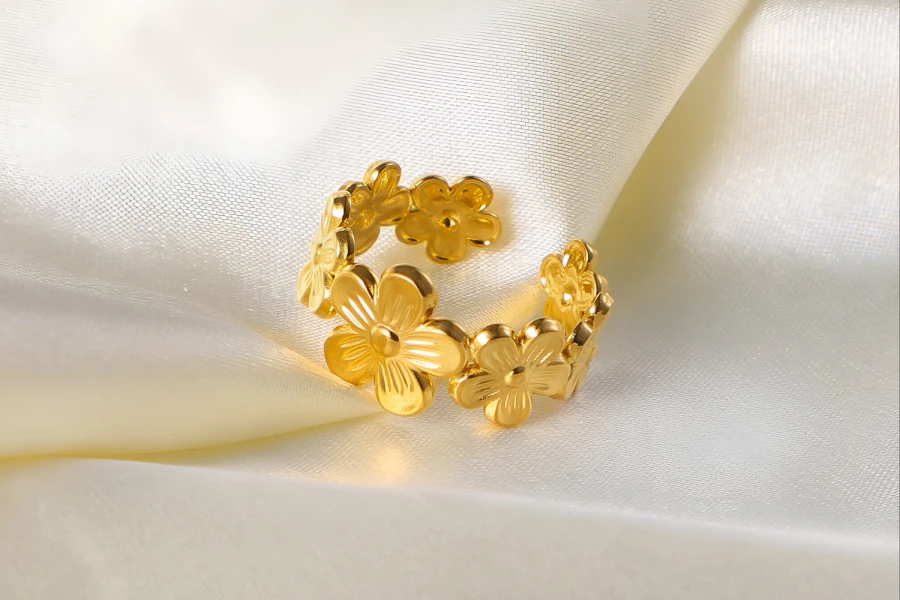 Chic 18K Gold Plated Stainless Steel Adjustable Flower Ring
