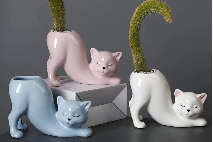 Cute Cartoon Cat Tail Porcelain Flower Pot Vase