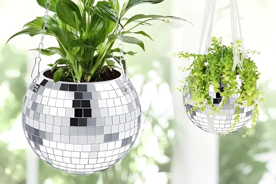 Decorative Silver Disco Ball Hanging Planter