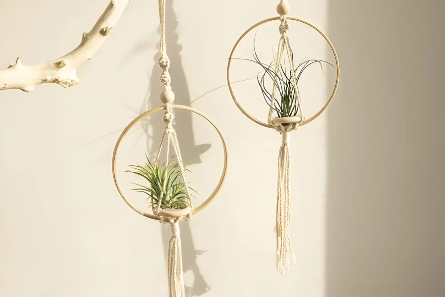 Macrame Knitted Wooden Boho Style Hanging Planter