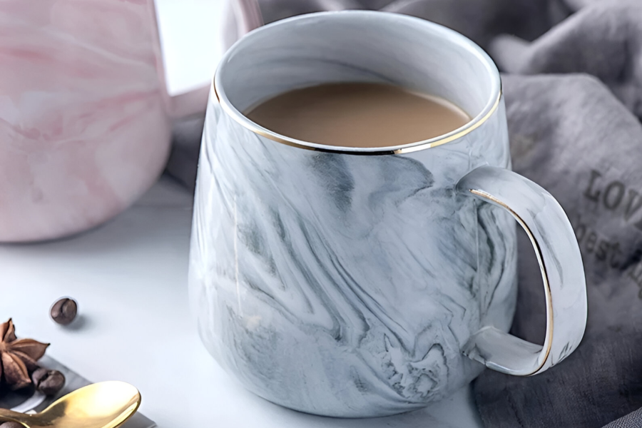 Marble Pattern Ceramic Mug with Gold Rim