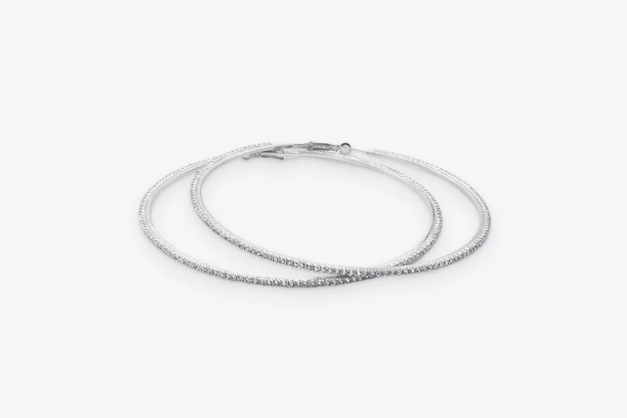 Silver Rhinestones Hoop Earrings