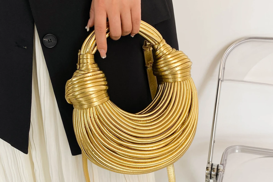This Golden Handwoven Bag is a chic accessory for her wardrobe. Whether for the honeymoon or casual outings, it adds a touch of luxury to any look. Durable straps and ample space make it both stylish and practical for everyday use. The gold finish adds a hint of glamour that’s perfect for both casual outings and upscale events. It’s versatile enough to complement outfits ranging from beachwear to evening dresses.